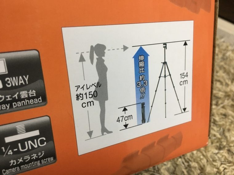 今回購入した「SLIK GX6400」ですが、三脚の足を伸ばすと最長で154cmもの高さになるようで、かなりの高さに対応してくれます。