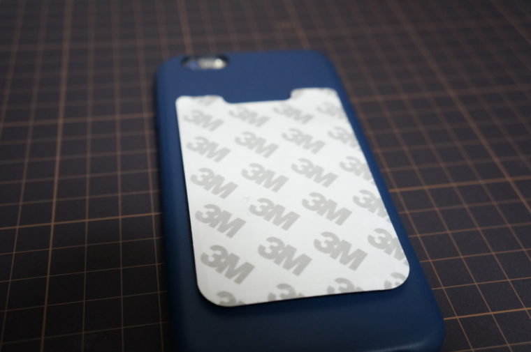 ケースを取り付けたiPhoneの背面にシンジポーチを取り付けていきます。
